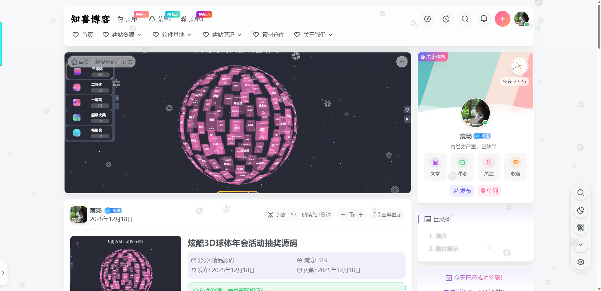 一款emlog的下雪积雪装饰插件,后台可自定义雪花参数,积雪效果需要手动查看主题的样式类名添加到后台