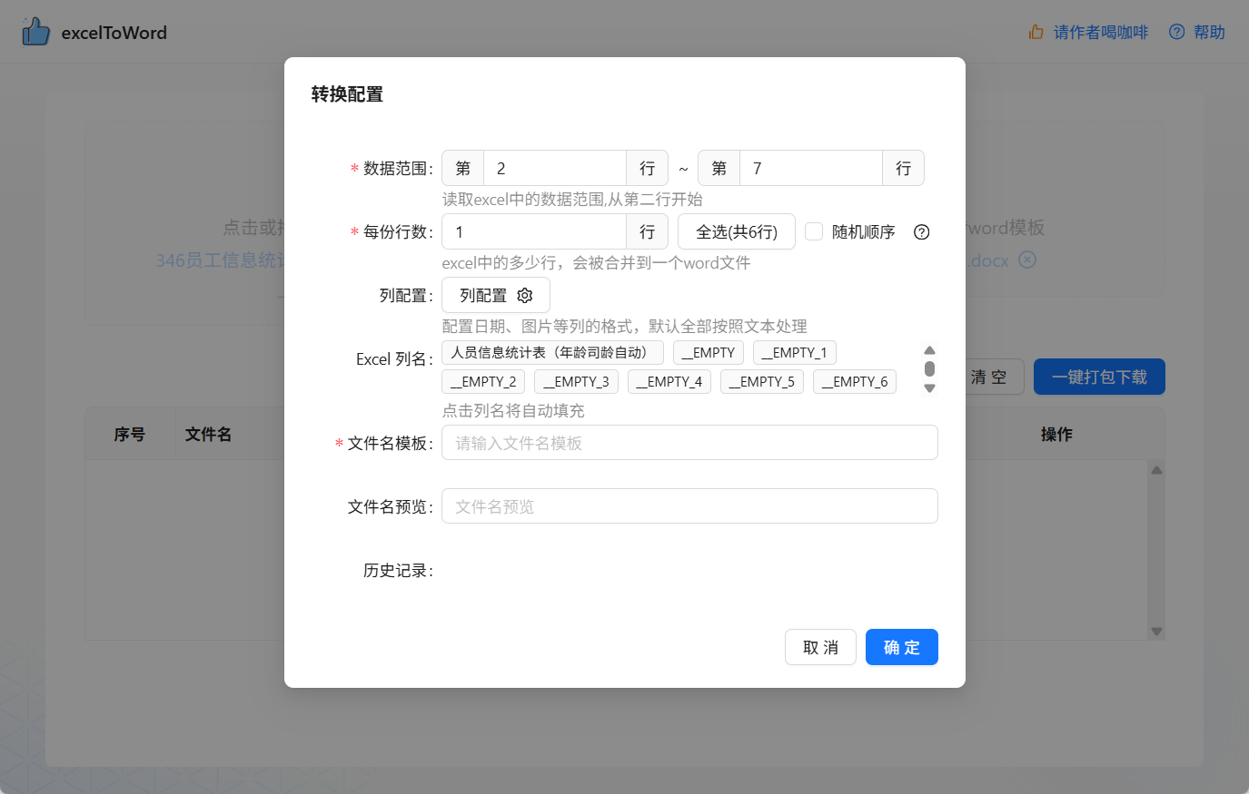 将 Excel 数据按照 Word 模板规则进行批量转换效率高、配置灵活、完全离线可用。